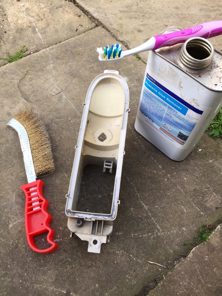 Once you have removed the Lens from the Unit [see video at bottom of this Blog Post], you need to remove the old stale glue / adhesive that held the lens in place. I used an Acetone based Glue Remover, be careful you don’t get High as a Kite whilst using this stuff. You definitely need to be outdoors, I wouldn’t even recommend using it Indoors with a Window open, you really need a through flow of air.
