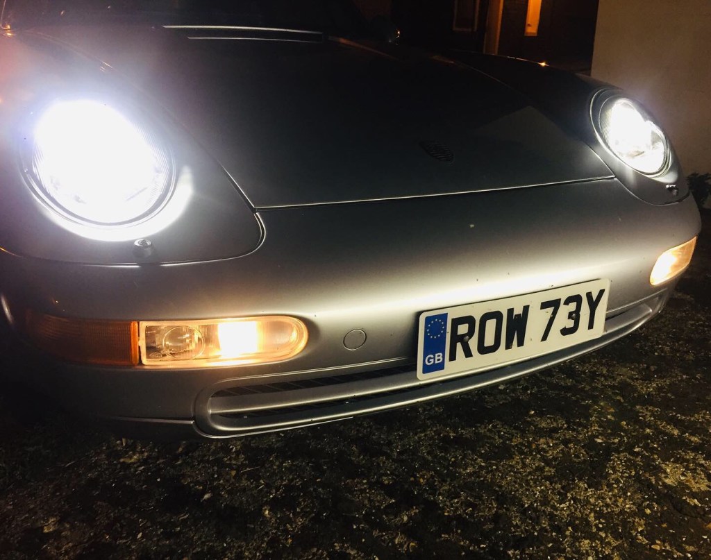 A previous owner of my 993 upgraded the Headlights to HID units, which are significantly brighter, and produce more visible light than standard incandescent lamps. The problem is, as can be seen by the photo above, that the Sidelights kinda let the Side down when it came to consistency of light and look in the Dark.