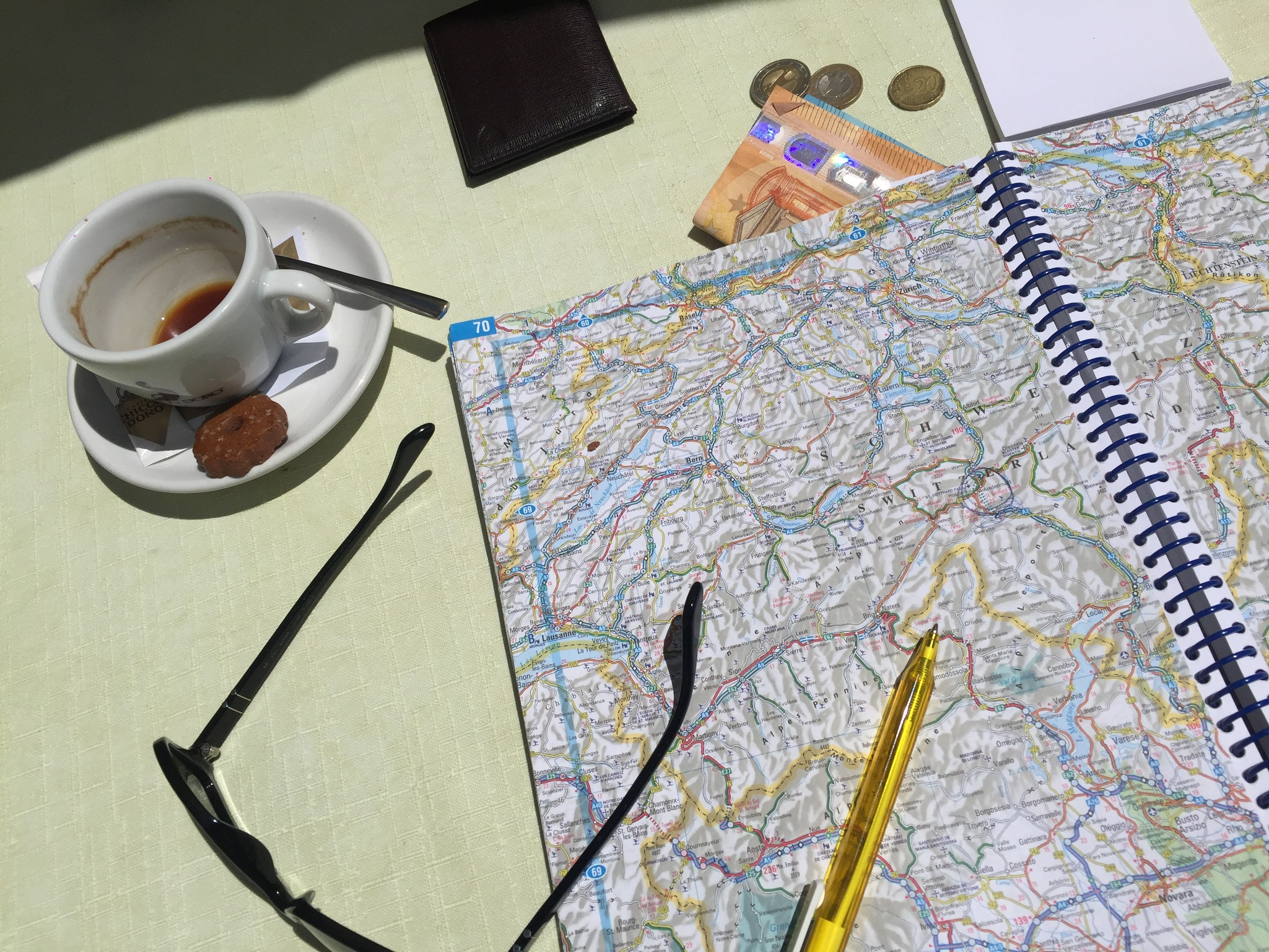 As the Cobbles ran out giving way to Blacktop, one sense was given reprieve but the others still maxed out. An unforgettable experience. The drive to Andermat used to reflect on that experience and be thankful for it. Andermat was a Caffeine Oasis in the Tarmac Dessert, and time to plan our route into Italy. After a day of Driving, real Driving, the triple lane expressway was a welcome comfort.