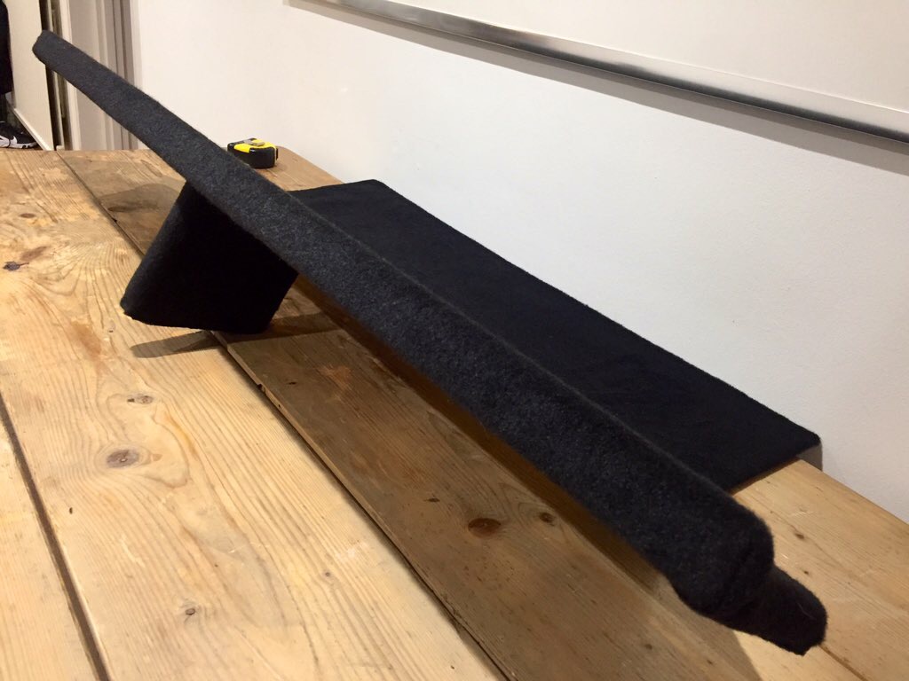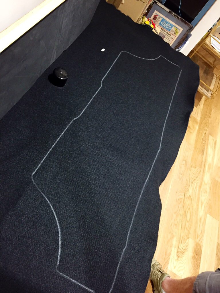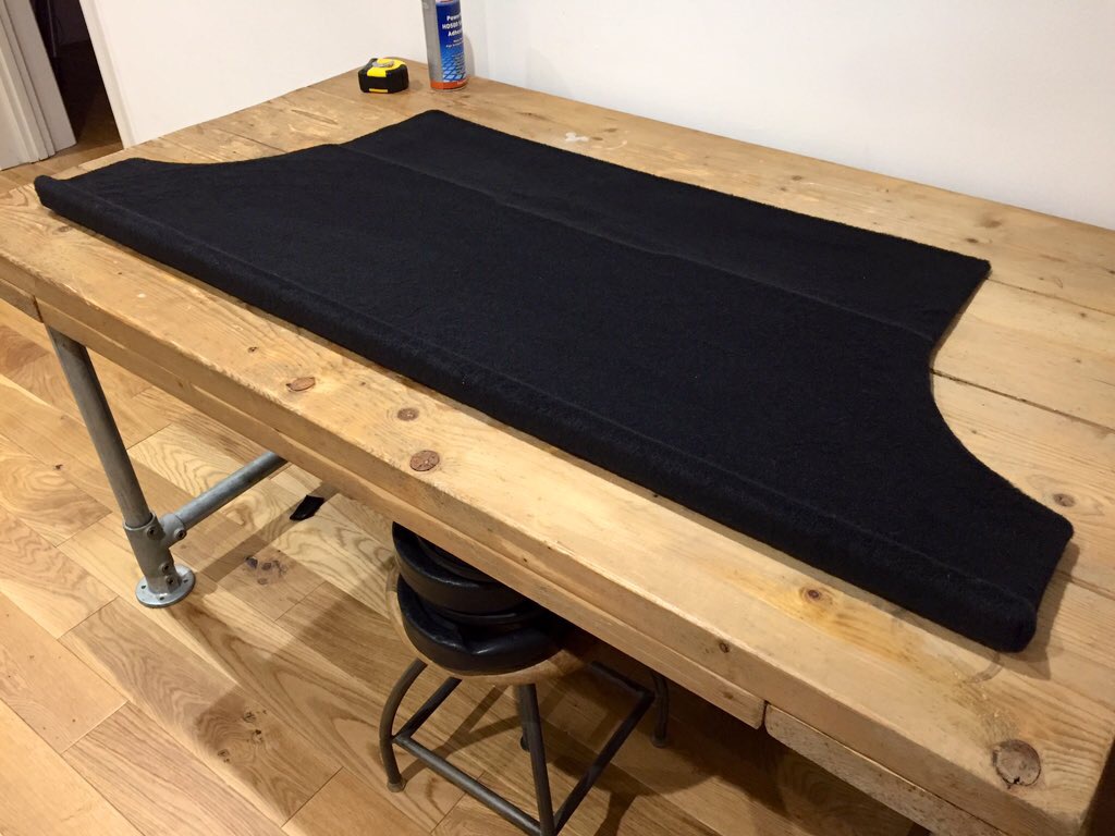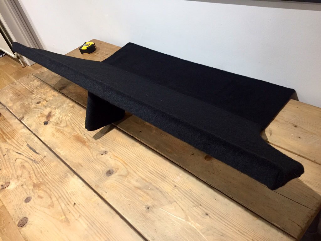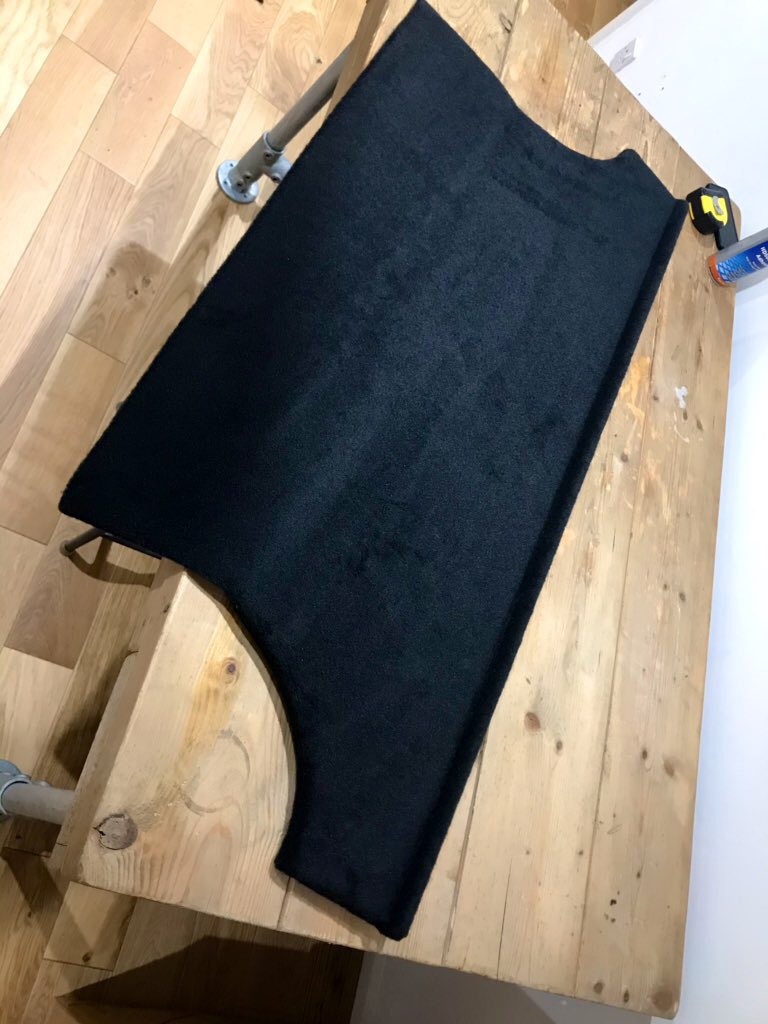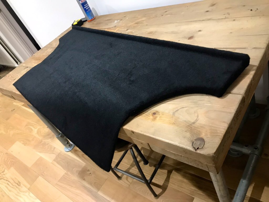 Carpeting next, and ordered from Ebay for £10 for a 2m by 2m Cut of great quality Perlon. Lightweight, fireproof and black..