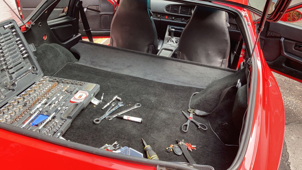 With the decision to equip the 968 with Recaro Buckets came the obvious next step of installing that Rear Seat Delete Shelf. Removing the Rear Seats is a straight forward procedure, starting with the Seat Backs and then the Seat Belt setup.