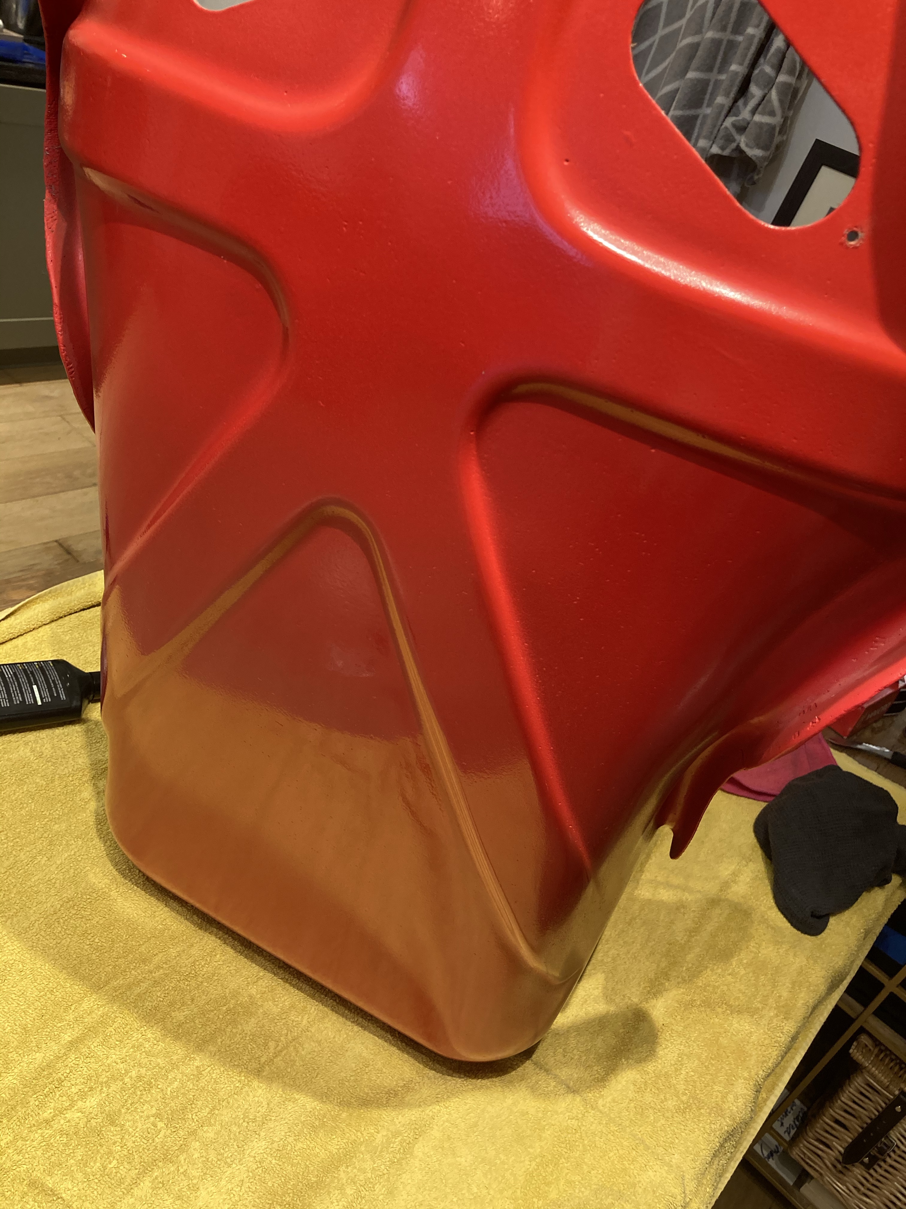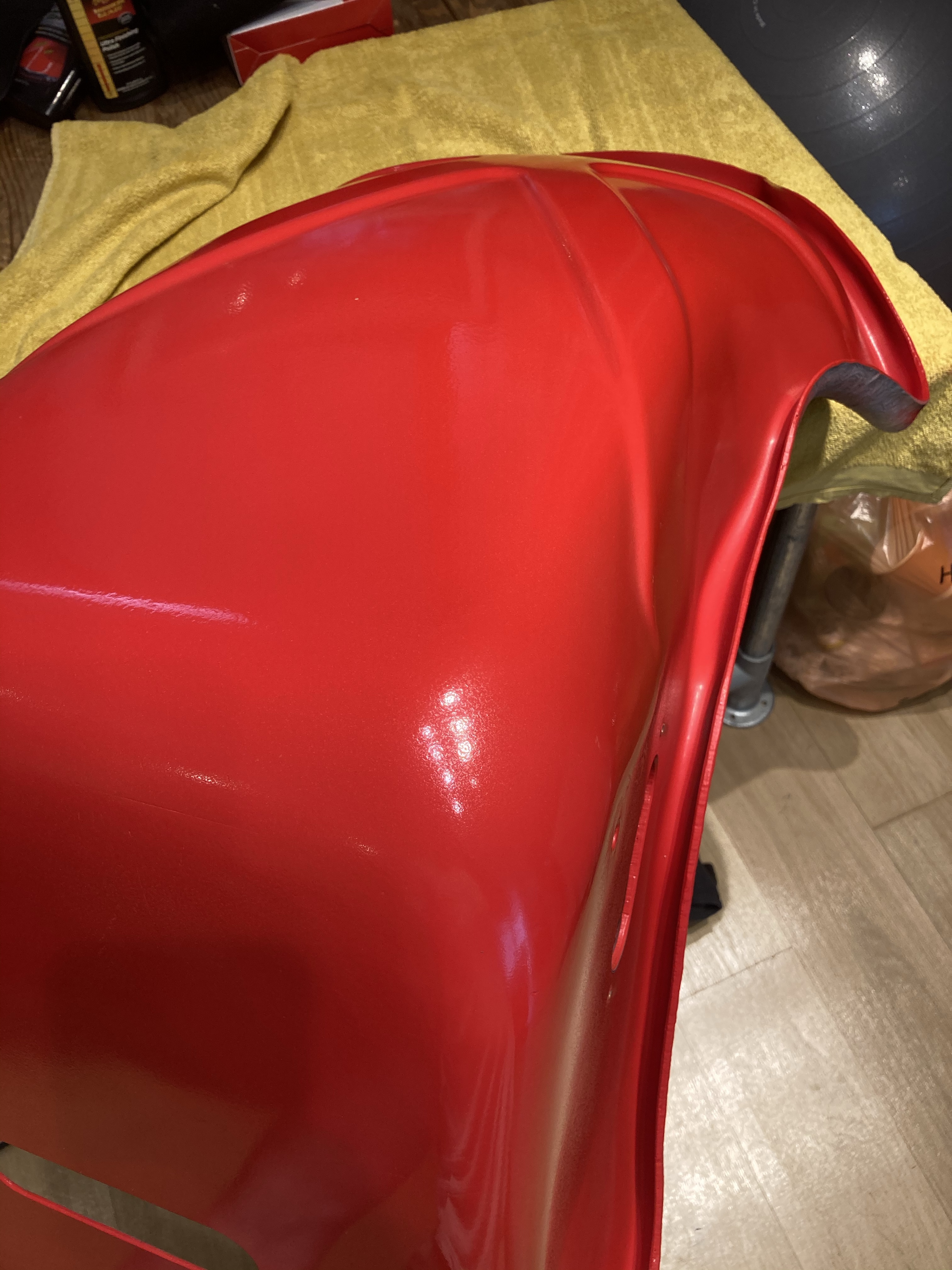 First Coat went on a Treat, Second even better. Nice and thick, no drips. Next Job would be Flatting and Polishing. My Dad showed me the Paper he wanted to use, a very old piece of 600 Wet & Dry which was “almost like paper” it was so worn; perfect for the job apparently..