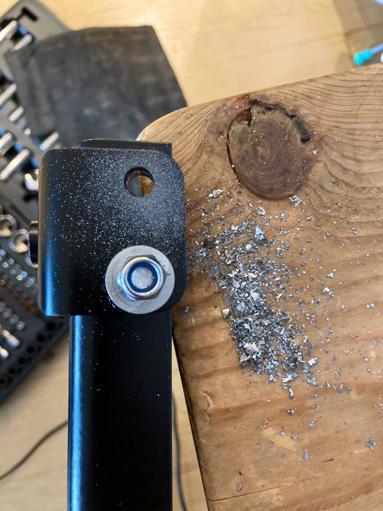 Mounting the Bracket requires some compensatory washers at the other 3 points where the Side Mounts bolt to the Rails; the Bracket is 3mm thick, so a couple of regular M8 washers should do the trick. Drilling is required however as the Rails do not have the two holes required to seat the base of the Bracket to the rear of the Rails. Wearing appropriate Safety Footwear and drilling a hole in Dining Room table in the process of course..