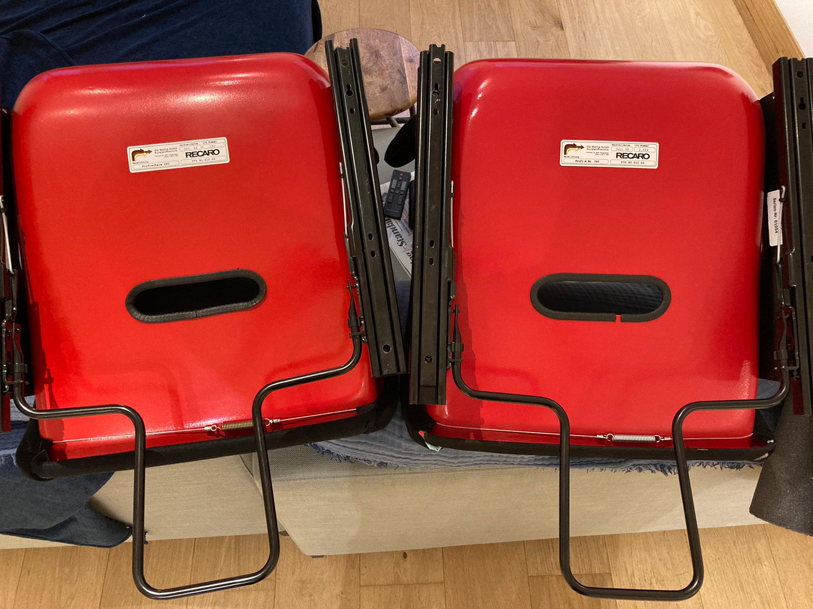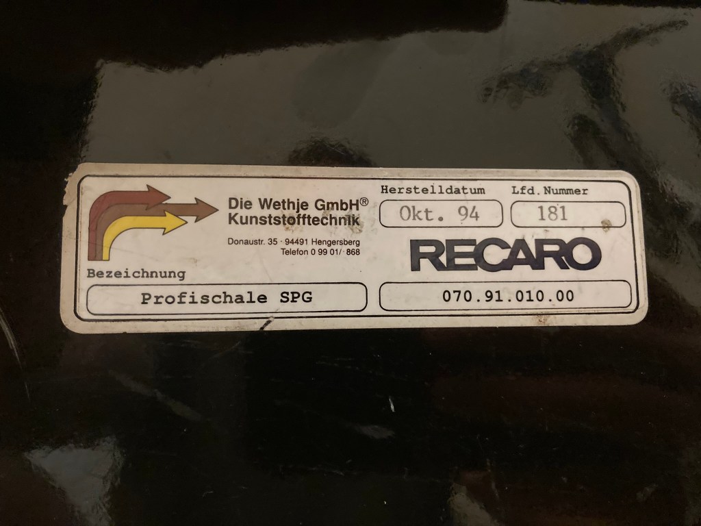 Retailing at £1000+ each new, complete with Frames & Rails, the Recaro Profi SPG [Profi is the model, SPG is the fibreglass reinforced plastic material of which it is made] is a variant on the Pole Positions I fitted in my 993. They have wings about the shoulder and a headless-stick-man-like moulding on the shell’s back. More relevant, is that they are very similar to a Club Sport standard issue Bucket Seats.