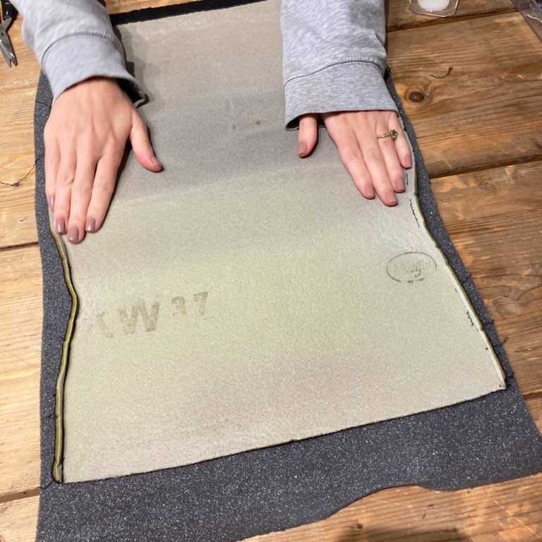 I used a Perlon style Fire Retardant material, which is very similar to the genuine Recaro shell cover in texture and quality; but a snip at £10.88 for a 1M x 2M plentiful piece.