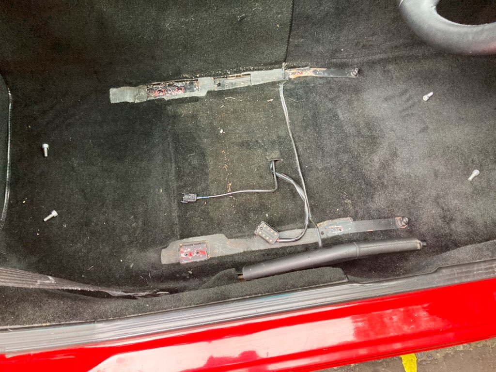 Starting with the Driver’s Seat, it’s an easy Four Bolt removal situation, not forgetting to uncouple the Electric Motor and Seat Belt Alert connections..