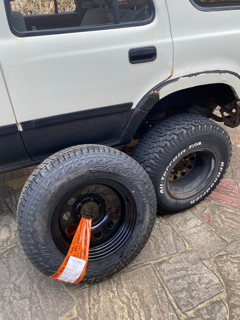 There is a marking on the sidewall of Car Tyres that denotes the age of the Tyre, it is referred to as the DOT number. Inspecting the BF Goodrichs on the 4Runner, the DOT number was 0711. That translates to a production date of the 7th week of 2011, so quite old; ancient actually, and dangerous for it.
