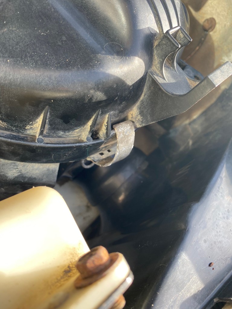 Simple procedure to remove the Filter; three equidistant clips and bingo, you can pull it out without much trouble. In the Engine Bay photo above, it’s the unit bottom right with the large Hose coming off it at about 11 O’Clock.