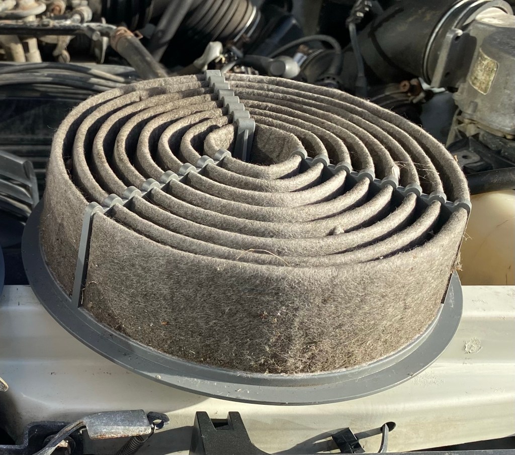 Pulling the old one out, I wondered if any Air was actually getting through it, the Air Filter looked like the Hoover Bag from a Student House.