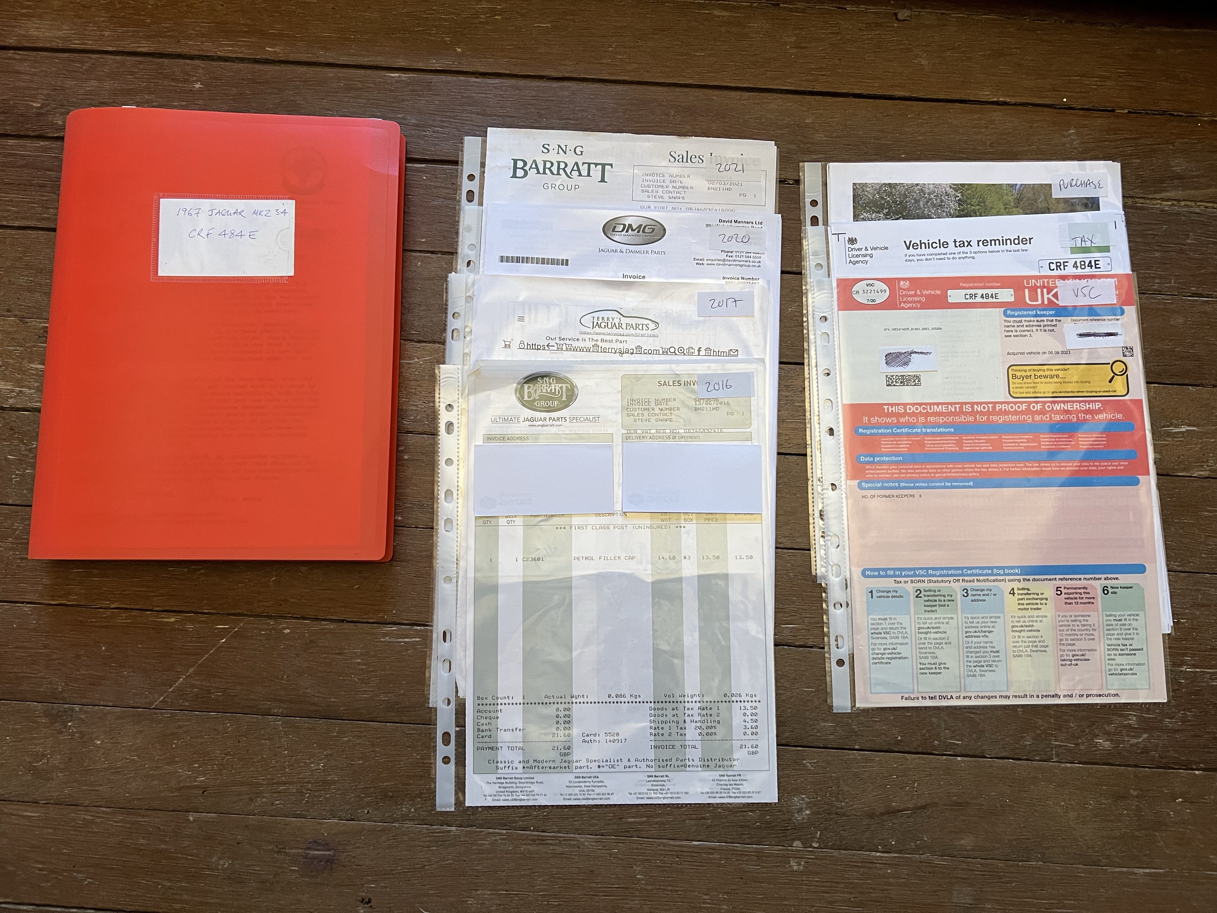 Supplied with 2 sets of Keys including a vintage Jaguar Fob, there is also a selection of components and parts included in the Sale.