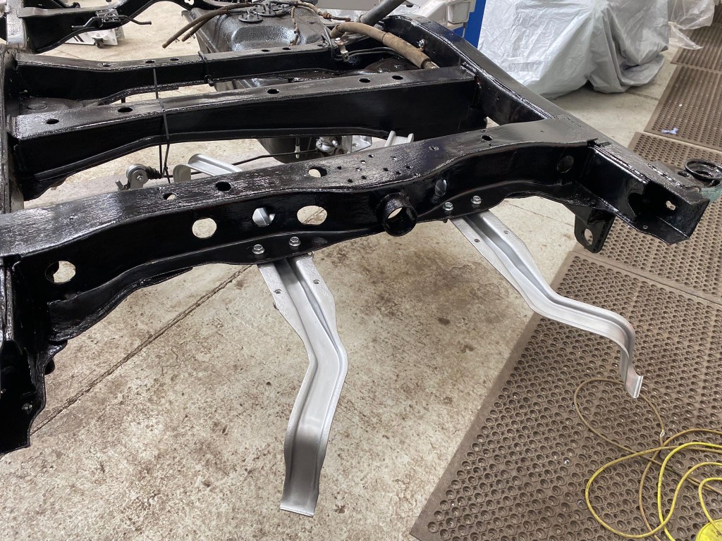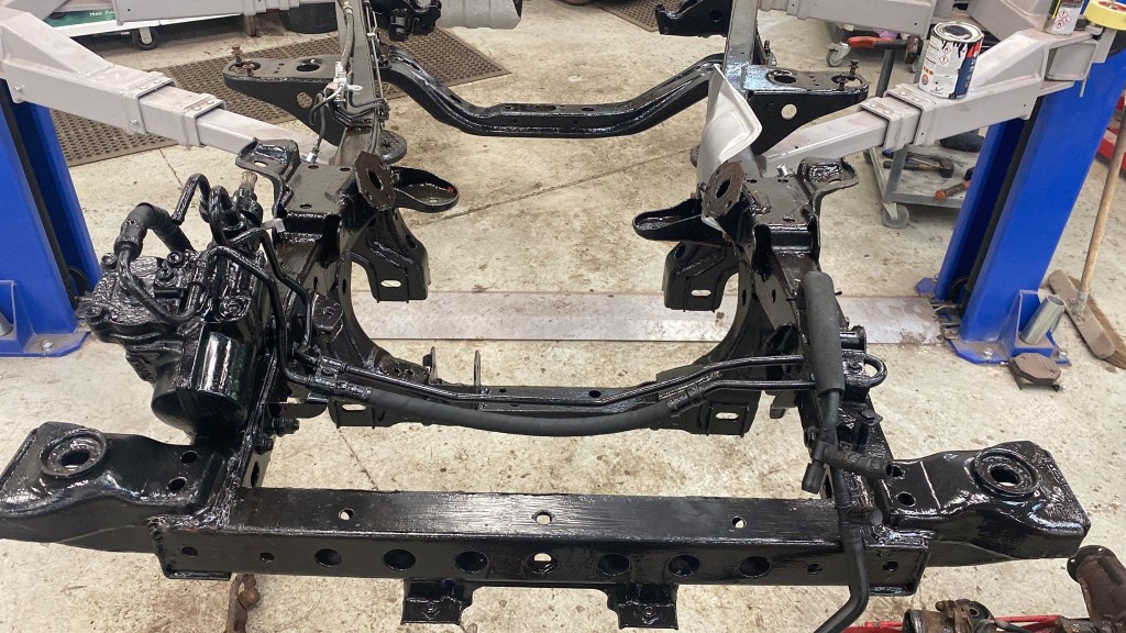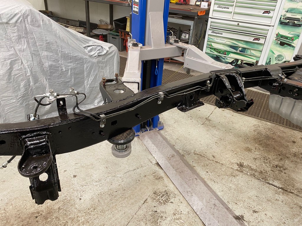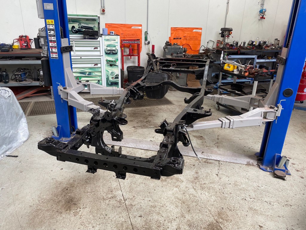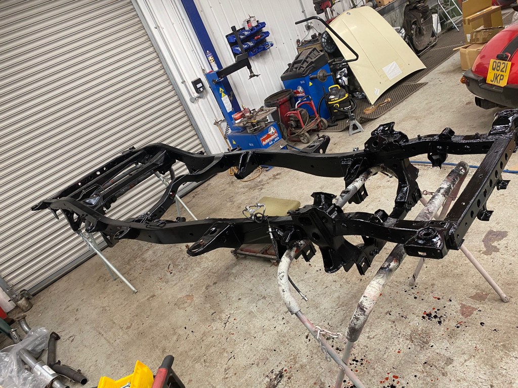 Once transported to Hellbent, the Work on cleaning, preparing [Red Oxide] and painting [Satin Black 2K] the replacement Chassis took shape, and before I had a chance to fully take it the detour that the decision had presented, New and Refurbished Parts were already being bolted in place.