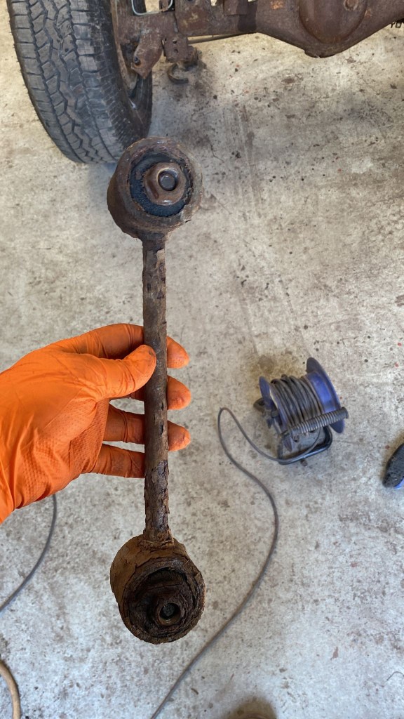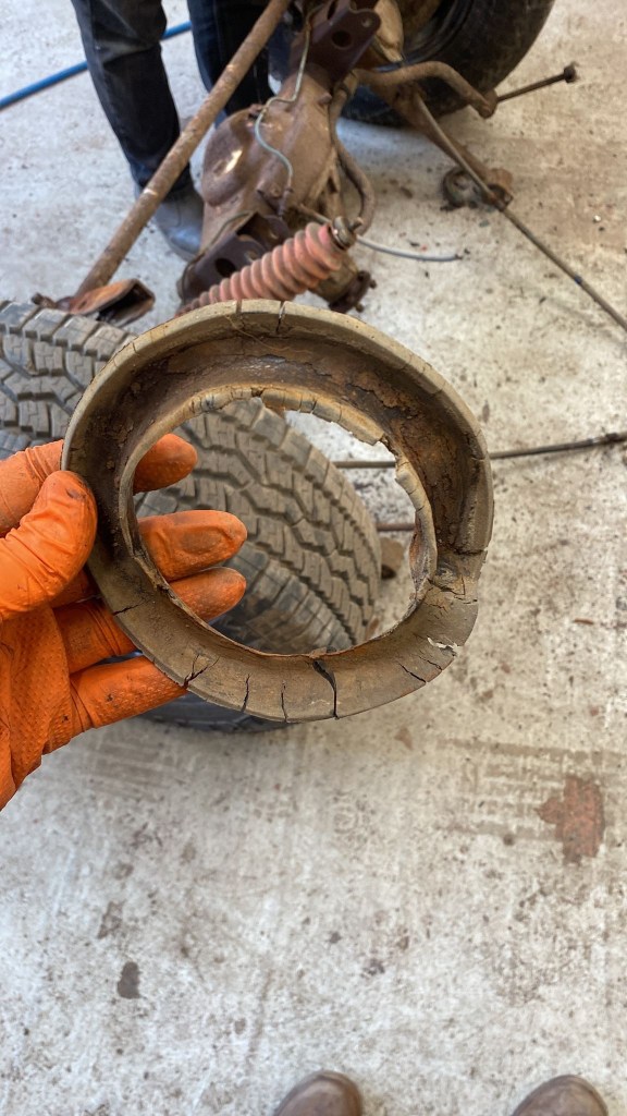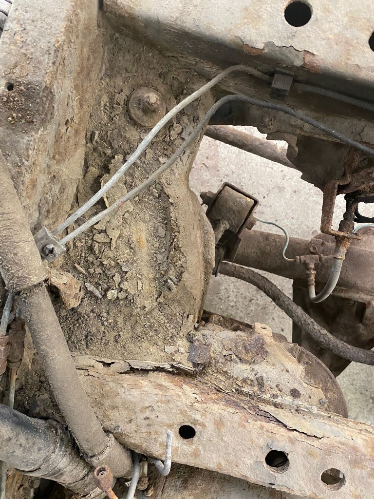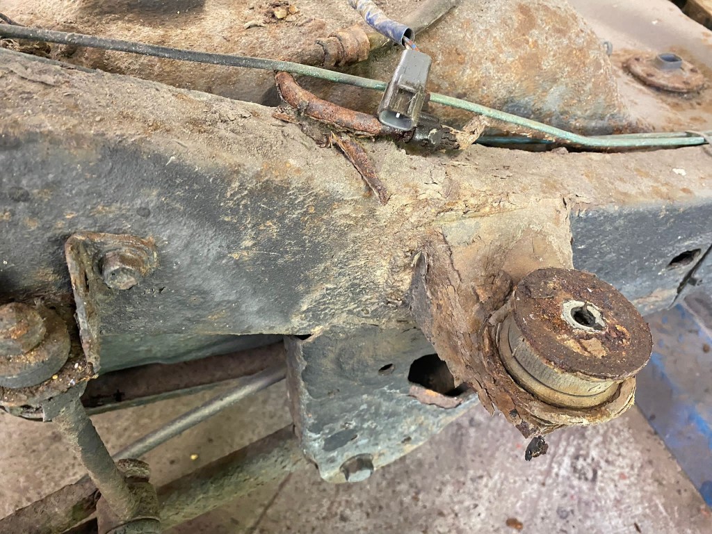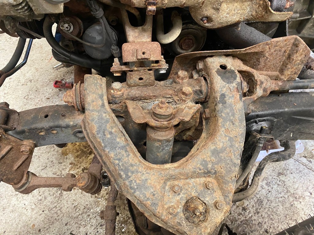 Anything that was directly bolted to the Chassis was Scrap Yard Fodder; Suspension Arms, Steering components, Rubbers, Bushes and Brackets. All shot.
