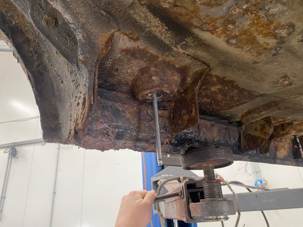 The Body on the other hand, was in better shape than I anticipated..! Surface Rust was of course abound, its ubiquity negating what might otherwise be referred to as Patina. But the man Thor at Hellbent did not seem phased by it, and assured me it could be brought back. The underside of the Body was obviously the worst of it, but nothing blasting, treating, preparing and painting its factory Glacier White couldn’t sort.