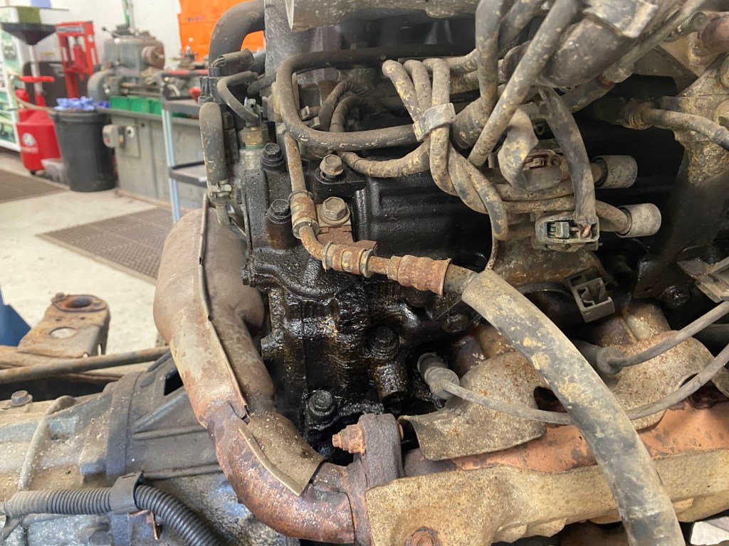 The Beating Heart of the Beast, its 3VZE 3.0L V6 looked like a Natural Disaster, with Engine Oil that had leaked from the Rocker Covers [I knew this had been happening] onto the hot Exhaust Manifold [yes, that’s how I knew], and what wasn’t burned off dripped further onto the Block. It was a filthy mess, and a big one at that.