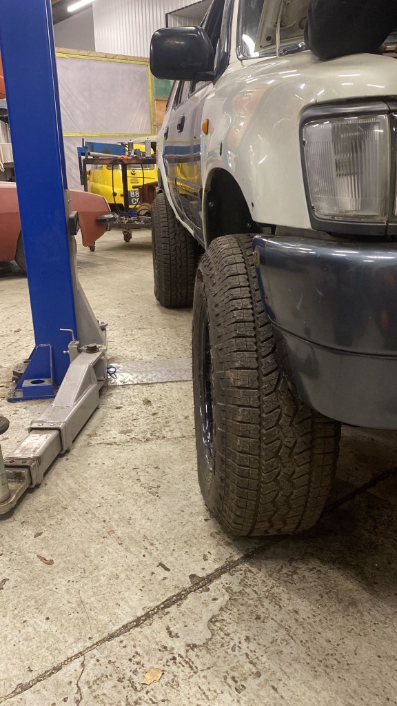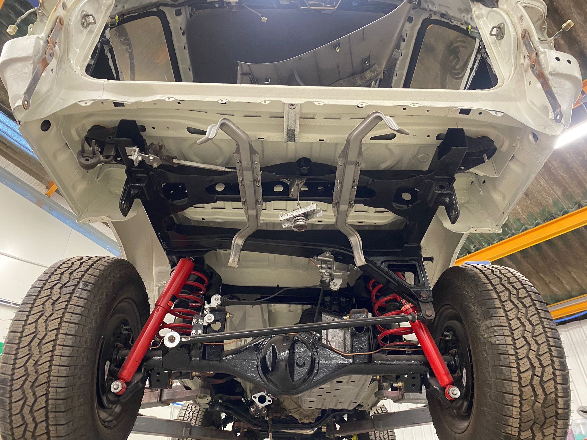 New Suspension, Uppers & Lowers and Steering Assembly meant that it all needed to be dialled in, and whilst it would be less resistant that trying to persuade Old Bolts, it would be a pretty comprehension Job. Hours of fettling and adjustment later, the attitude of the Beast was levelled, with not only the Body sat level on the Wheels, but the Panhard Rod also keeping the Live Rear Axle centred.