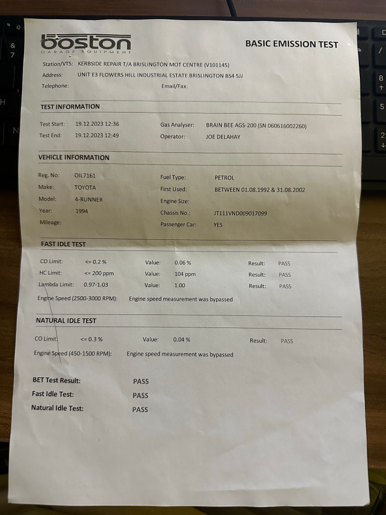 So yes, the Beast passed its MOT..! And not so much as a mention of an Advisory.. I knew I knew..