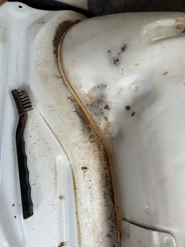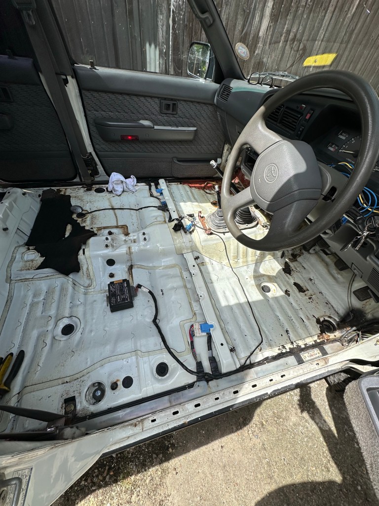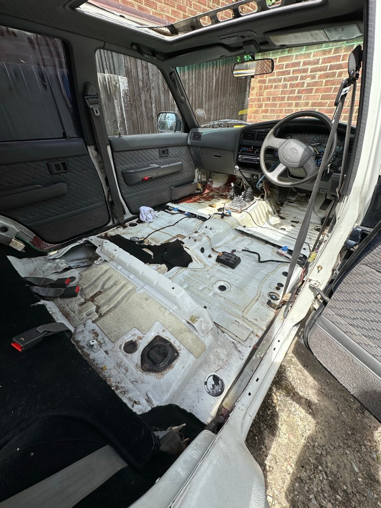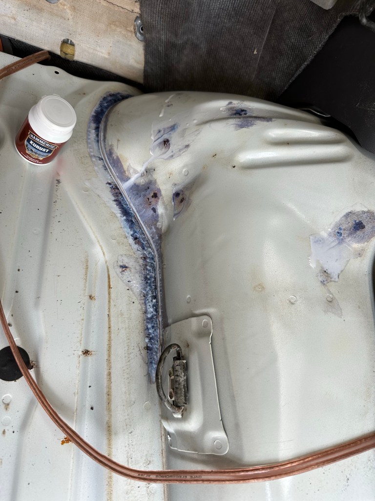 The Old Carpet had also been harbouring the 4Runner’s ubiquitous Enemy: Rust. More of the damned stuff, this time along the seam line between the Floor Pan and Wheel Arches. I can’t say I was surprised though, it’s always there, even when you think you have eradicated, treated or replaced Rusty Metal, there is always some elsewhere waiting to be [hopefully] discovered.
