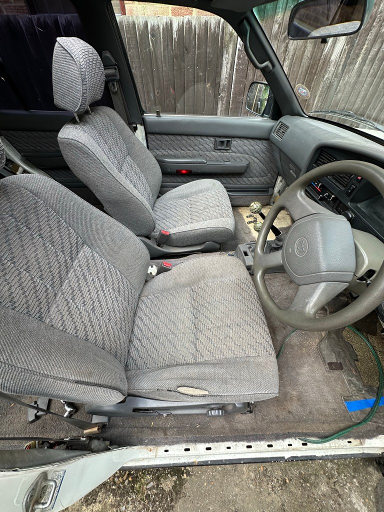 Rear Seats came out okay, but the Fronts gave me a surprise. The Passenger Mounting Frame has a split in it at one of the Feet, added to the fact that the securing Bolt was rounded I decided to sacrifice the Foot and grind it off enabling removal the Seat. Yes, somewhat rudimentary and yes, I butchered the Mount, but I could/would not have put the Passenger Seat back in the 4Runner with the Foot the way it was anyways, so.