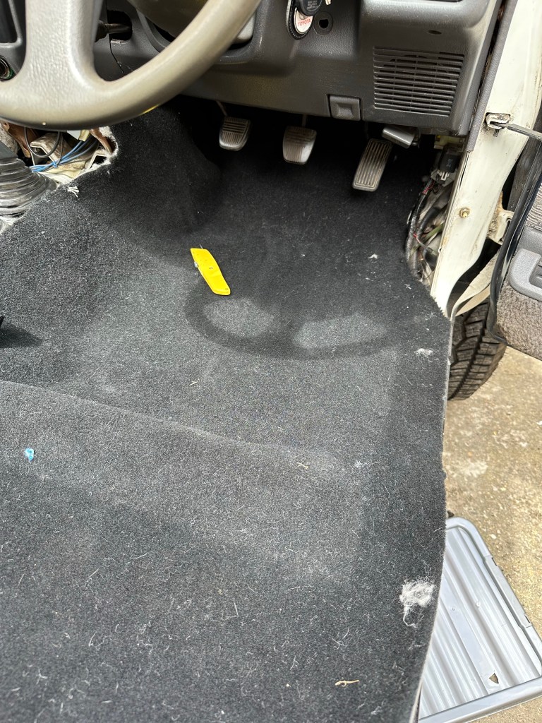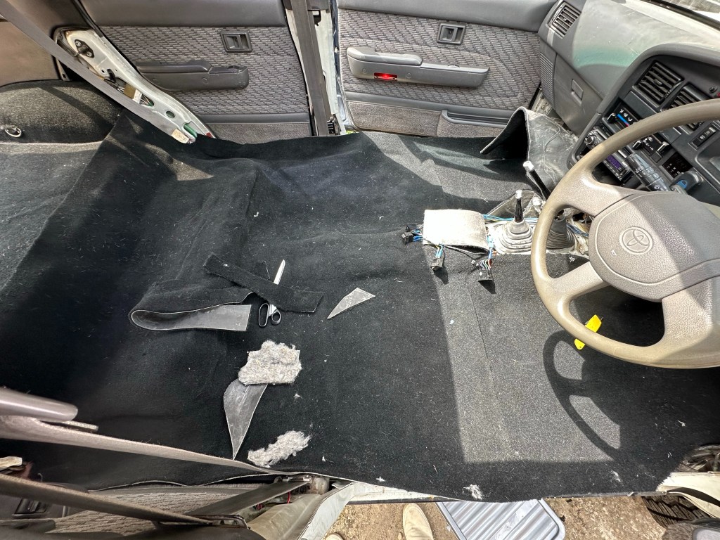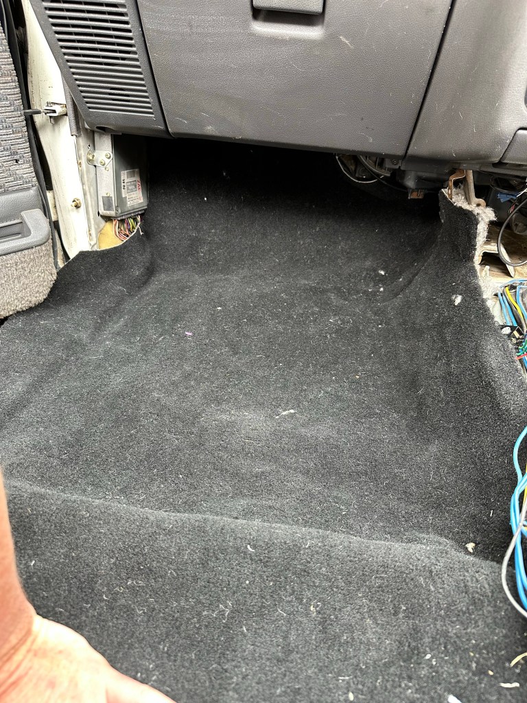 Removing the Original Factory Carpet, it was clear how in desperate need it was of replacing. Not only had most [if not all] of the Sound Deadening disintegrated, but the weave itself was thinning to the point of being thread bare. Cosmetically, it was several shades of Sun Bleached.
