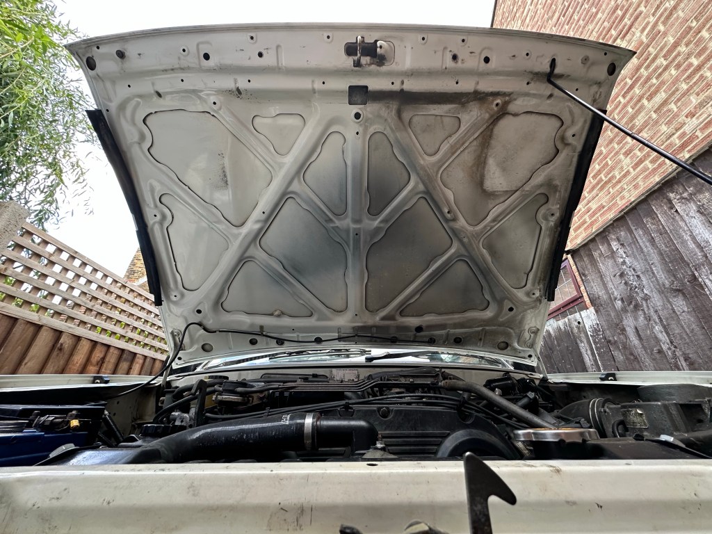 I looked at the underside of the Bonnet one day, and that was that. It had to be perfect, or at least, better. But perfect. What a mess. 30 Years of Engine Heat and Road Dirt taking up residence, so the first Action Item was a good clean. But what to use..?