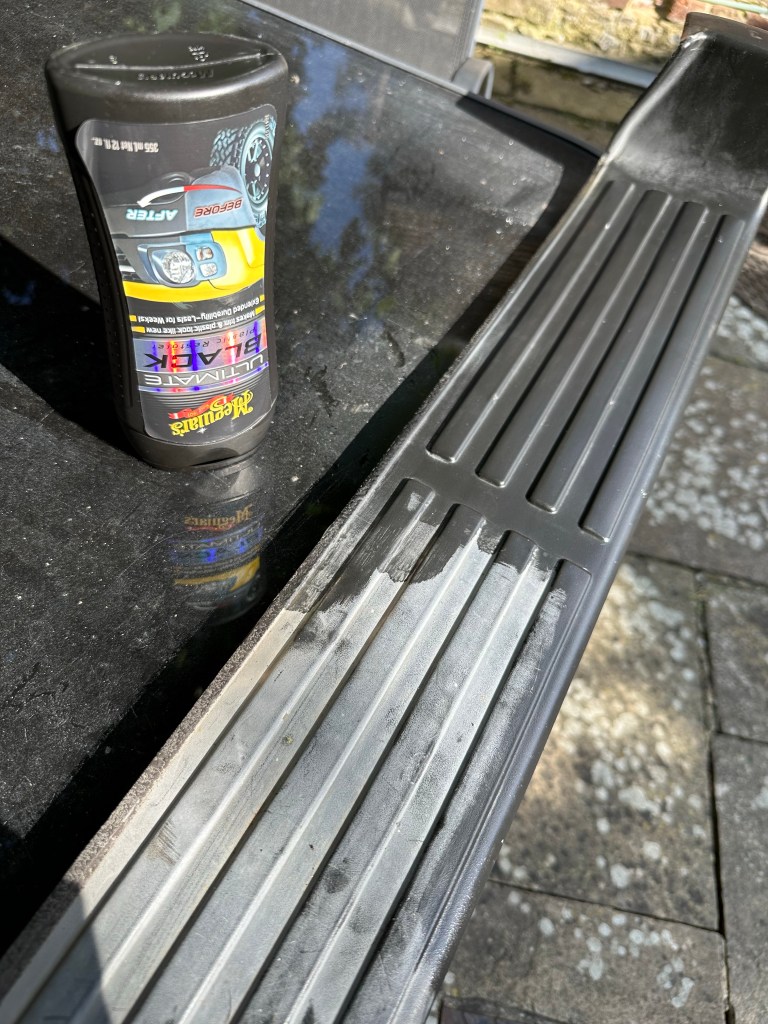 Whilst the Paint was curing, I tackled the Plastic Bumper Cover too, which is NLA to order new [although I did find one in Europe, but as damaged stock] and mine was in great condition albeit Weather Worn.. Used some magical Meguiars Ultimate Black, and bingo..!