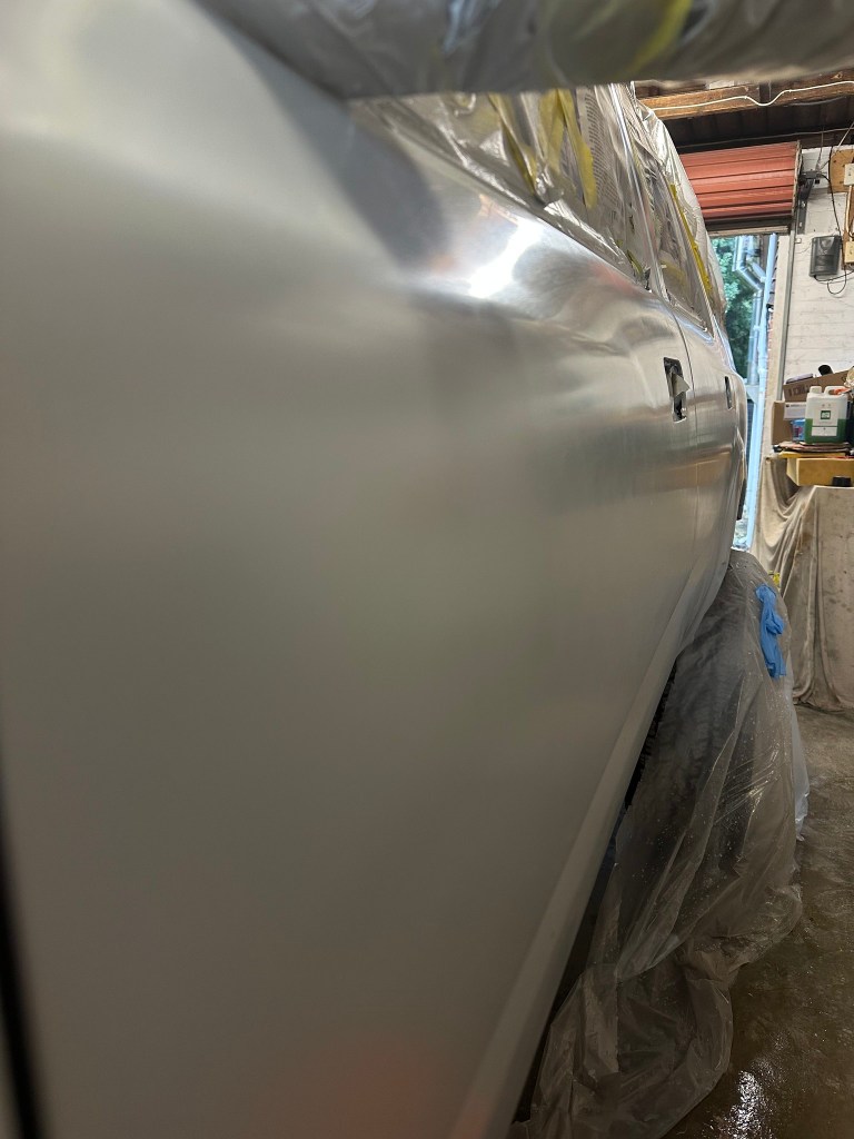 This felt like a Big Thing, because it was a Big Thing. With Primer, if there was a mistake you could always wait for it to dry then sand down and start again. Laying down the Glacier White felt like a more permanent venture, and one that only had one chance to get right. Deep-Breath-behind-a-Mask, and Spray.