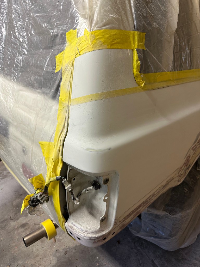 It might be that at this point, you are wondering why there is a weird line of Thin Masking Tape across the base of the D Pillar, and you’d be right. I kinda made a mistake here, forgetting to mask off the section above this and below the thicker Masking Tape further up. I intended to remove this temporary piece of masking once the Primer was down so I could feather in the Top Coat. Fortunately, I got away with it, as you will see later.