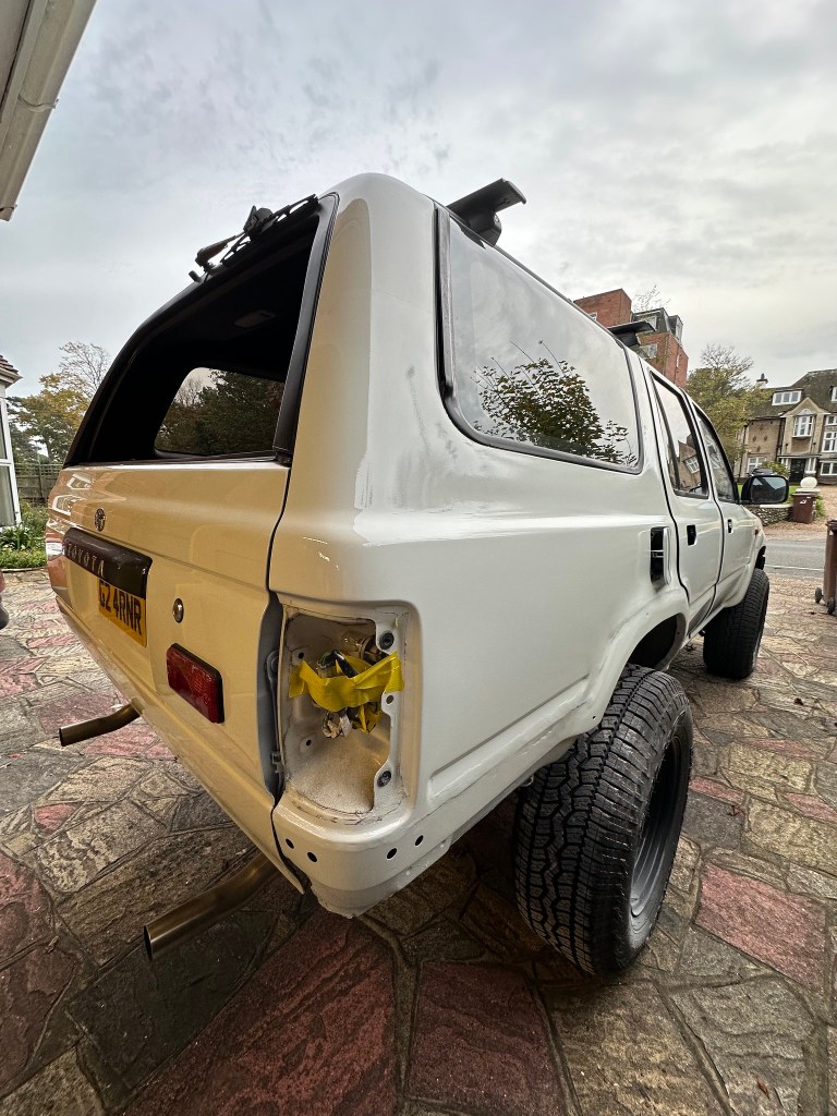 Now, I know it isn’t perfect, but that’s why I’m not a Professional Spray Painter or even anywhere near it, but damn if I wasn’t pleased with my efforts. I could have spent £Thousands [except I couldn’t..!] getting a Professional to do it, but the Graft and Satisfaction I got from doing it myself, and learning from it, is priceless and worth the imperfections. White is forgiving anyways, thank goodness.